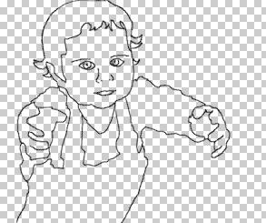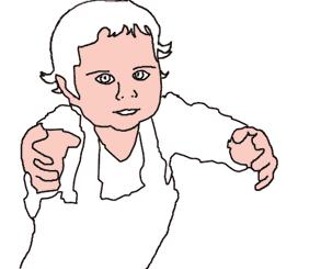 其实,我们想从原始图像上得到的不过是所要描绘对象的大概轮廓。在背景层上新建一层,根据你的图像大小选择合适的笔刷大小和硬度。用黑色画笔仔细描出孩子的轮廓。如果画面中的某些部分挡住了我们的主要对象,要设法补全,使对象完整。尽量保持画面的简洁,太过复杂会使后面难以处理。这幅图中,我所用的是直径为3像素,硬度为0%的柔化笔刷。现在看是可以了,但在后面,你也许会觉得这样的笔刷还是显得纤细了些。(图01)