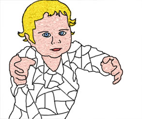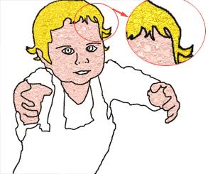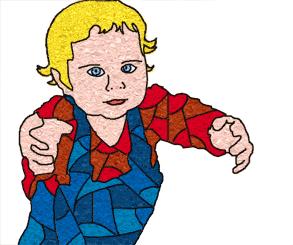 第一步,你要确定作品的主题是什么。如果你把作品想象成威斯敏斯特教堂的一部分,那么当阳光透过这块玻璃时,你想对上帝诉说些什么?所以要根据你的主题需要为你的作品找一幅原始图像。你可以从现成的剪贴画中选一幅,也可以用自己的图像,还可以扫描一张画。这里我选择了一个可爱的孩子的照片。(图00)