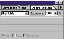 4.我们可以用工具栏中的提亮(DodgeTool)和加深(BurnTool)工具分别对图像的明暗处进行提亮和加深,以加强其对比。另外双击提亮或加深工具的按钮都会出现属性控制面板