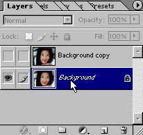 6、复制背景层,然后隐藏复制出来的层(你没看错的,该教程就是要这样做)。(如图)
