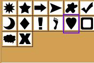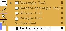 打开了 custom shape tool (自定义形状工具),点击选项栏 shape 旁的下拉箭头,瞧瞧里面有些什么。啊,一颗心,这不正是我需要的吗?用它表达相思之情是再合适不过了。