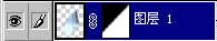 激活图层一,用套索工具选择底部边缘,执行选择>羽化命令,设定羽化容差为20,单击好。再执行编辑>清除命令,除去明显的边缘部分。执行编辑>变换>扭曲命令,使瀑布的上边缘与悬崖口吻合。为图层一添加蒙板(将图层一拖到下方的标志中即可),选择渐变工具,把瀑布的左上角部分渐变为黑色(见图)