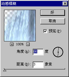 滤镜>模糊>动感模糊,将其参数设置成如下: