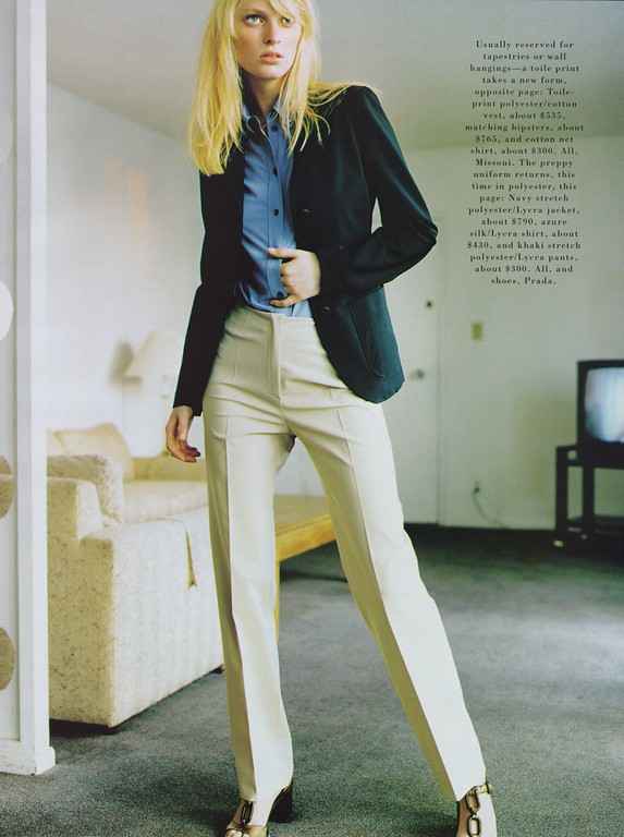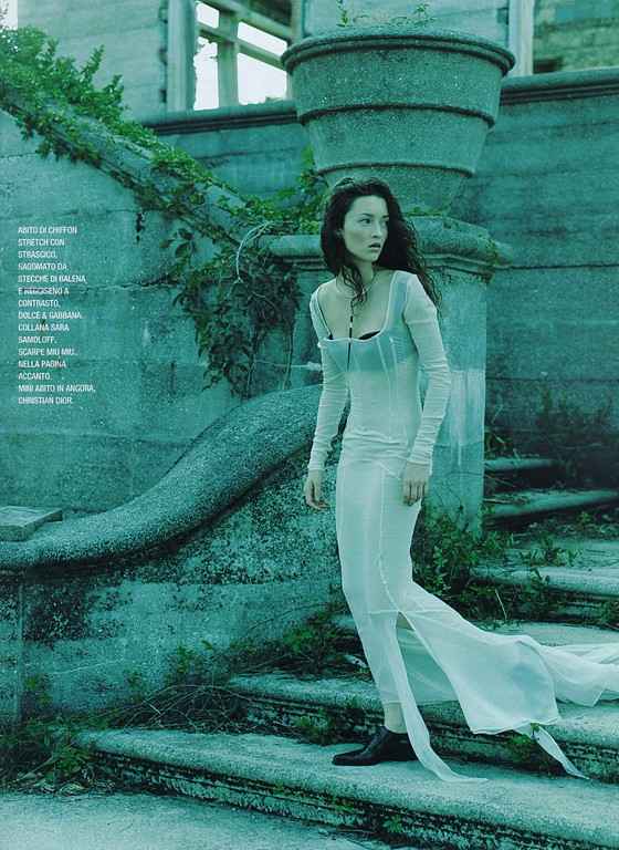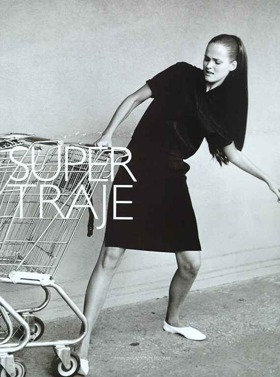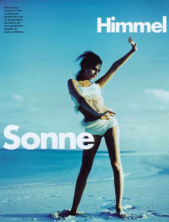 第二张图片虽然图片上的字很多,却还是给人一种很清爽的感觉,设计者利用衣服的色彩以及走势打入文字来吸引目光,不失为聪明之举。前期拍摄从人物的整体造型到灯光色彩都非常精彩,这绝非后期修改所能做到的。