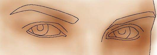 1.新建图层用来打线稿,用钢笔工具画出眼睛和眉毛的形状(如果是半侧面的话,要注意透视关系)如图1。