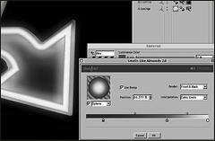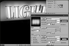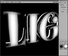 回到三维程序中,建立一个新材质,然后将刚才做成的图像作为贴图载入发光度(Luminosity)通道。将此材质贴到字母模型的前表面。我们可以用Fit to Object命令,因为贴图大小恰与物件相同。