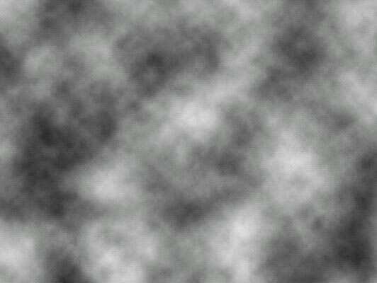 3、将鼠标移动到图层面板中,然后单击其中的新建图层命令,来创建一个Layer1图层;接着单击键盘上的“D”键让当前编辑区域的前景色和背景色恢复为默认的颜色;接着将鼠标移动到菜单栏的Filter菜单项上,然后从弹出的下拉菜单中依次执行Render/Clouds命令,大家就可以看到一个如图3所示的效果画面;