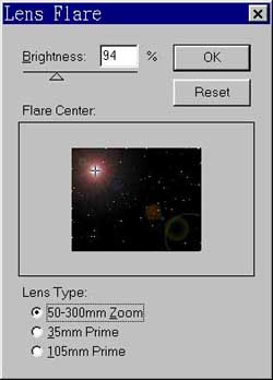7.最后使用(Filter)-(Render)-(Lens Flare)来加上远方的太阳即可。