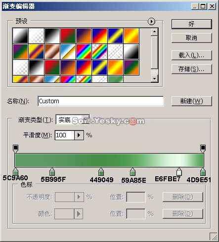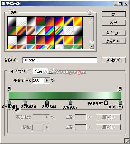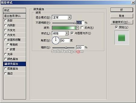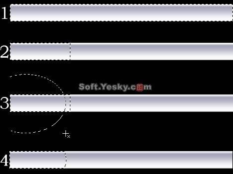 6、制作开始按钮的关键是制作出按钮形状的选区。在图层“Bar”上新建一个图层,并命名为“White”,然后按住Ctrl键的同时单击图层“Bar”,载入图层“Bar”的选区,如图6中1所示。 7、选择工具箱中的“矩形选框工具”,在上方的选项栏中设置为“从选区减去”,如图7所示,然后选择窗口中矩形选区的右边部分,将其减去,得到如图6中2所示的结果。 8、选择工具箱中的“椭圆选框工具”,在上方的选项栏中设置为“与选区交叉”,如图8所示,在左边绘制椭圆,使其形成如图6中4所示的结果。一次不行,可以按Ctrl+Z键撤消再重做一次,直到结果令你满意为止。 9、将得到的选区填充为白色,复制该图层,并命名为“black”。按下快捷键Ctrl+I将该图层中的图像反相,成为黑色。选择工具箱中的“移 动工具”,然后按一次向左箭头键,将图像向左移 动一个像素。 10、复制图层“black”,并向将复制得到的图层向左移 动一个像素,方法同上。将这个图层命名为“button”,使用步骤5中介绍的方法打开“图层样式”对话框,为其设置渐变叠加,具体设置如图9、图10所示。 设置完毕,得到如图11所示的结果,已经比较接近真正的开始按钮了,但还有一点不足的地方,接下来继续制作。 11、在按住Ctrl键的同时,单击图层“button”(即有渐变按钮的图层),载入该图层的选区。单击工具箱中的选框工具,敲击向左箭头键7次,将选区稍向左移 动一段距离。 12、创建一个新的图层,用任意一种颜色填充该选区。 13、再次按住Ctrl键的同时,单击图层“button”载入选区。选择工具箱中的“魔棒工具”,并在选项栏中设置为“从选区减去”,单击新图层中选区以外的填充区域,得到一个新的月牙型选区。保持选区,将该图层删除。 14、新建一个图层,并命名为“bevel”,用黑色填充选区,并设置图层样式为渐变填充,方法同步骤10,具体设置如图12所示。 这样我们就得到了逼真的XP风格任务栏,如图13所示。 你可以自己添加按钮上的图标及文字,如图14所示。 .psd原文件下载