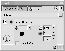 选中矩形图形,打开效果面板并从下拉菜单中选择“阴影与发光→内侧阴影”;选择阴影参数(如图1),最后按回车键。