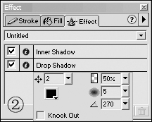 图1 第三步:阴影仍然选择矩形图形,再次使用效果面板并从下拉菜单中选择“阴影与发光→阴影”;选择阴影参数(如图2),最后按回车键。