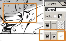 ::最后建议不要在墨线层上色~这样会损失墨线的!比如颜色和墨线接触的地方会有锯齿~可以把墨线层锁住,这样就不会有失误