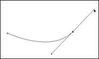 你一定在想如此逐次转换锚点为弧形岂不是费事得很?是的,其实在按下第二个锚点时,按住鼠标左键并拖动鼠标,就可以直接调节路径弧度了。但不论通过哪种方法调整路径弧度,在第2锚点后的第3个锚点绘制后,你会发现第2和3锚间的线段自动变为弧形了,这又给我们勾勒图形带来了麻烦。所以在绘制第2个锚点后,按住“Alt”键,再点一下锚点,减除锚点的另一端弧度调节线,只保留一端(图7),再绘制第3个锚点时仍然是直线,只要按第2个锚点的弧度调节方法自由调整弧度即可。