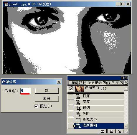 3.打开色调分离Image/Adjust/Posterize,并且设置色阶值。