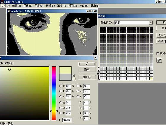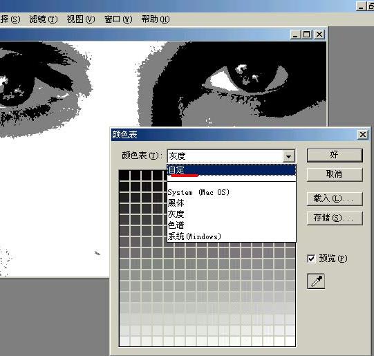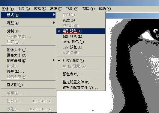 2.将半色调图象转成RGB模式,接着转成索引色(IndexedColor)(如图4)。