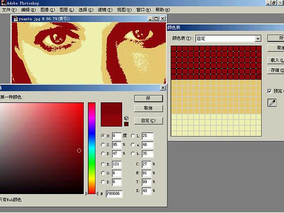 12.将模糊处理后的的半色调图象转成RGB模式,接着转成索引色(IndexedColor)。