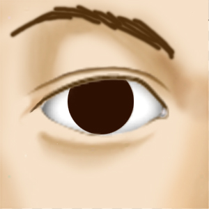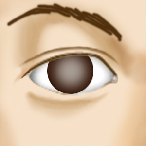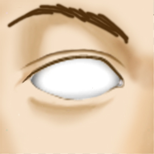 3.在眼眶内用魔术棒选取眼睛的形状,新建一个层拖放到最底层用白色填充,并用burn tool把边缘加深,使眼球有立体感。