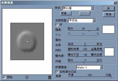 3:回到图层面板,新建图层(改名为 壶),填充白色。执行滤镜下的光照效果,设置如图。如果你不喜欢这种光照角度,也可以自己定。