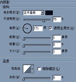 7:执行图层下的图层样式—投影,内阴影,外发光。设置如图。