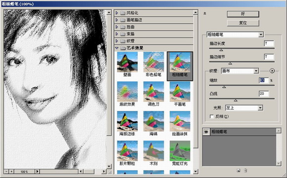 6、复制图层,在滤镜“艺术效果/粗糙蜡笔”中调整数值