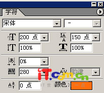 2、为了能制作四个平面立方体的变形效果,大家可以利用Photoshop中具有的字体变形效果,特别是其中旗帜变形效果正好合适要制作的变形效果。用鼠标单击图层面板窗口,来返回到图层面板界面上,并在该界面上选中Layer 1图层;接着将鼠标移动到主界面左边的工具条的文字输入按钮上,并用鼠标左键单击之,然后在Layer 1图层中输入“■”文字符号,同时将该符号的字体大小设为200pt,并在如图2所示的字符面版中设置其余合适的参数;