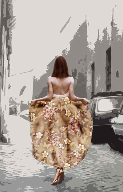 为了将人物的裙子图案转换为其他的图象,我们再次利用钢笔工具,只选取人物的裙子部分,也将它转换为通道的形式,方法和上面的相同。