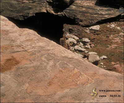 1.假如我们要在如(图1)类型的岩石图片的石头表层加上雕刻后又经过风吹雨打而形成自然风化的文字,要如何才能做的自然呢?下面介绍一种简单的方法。