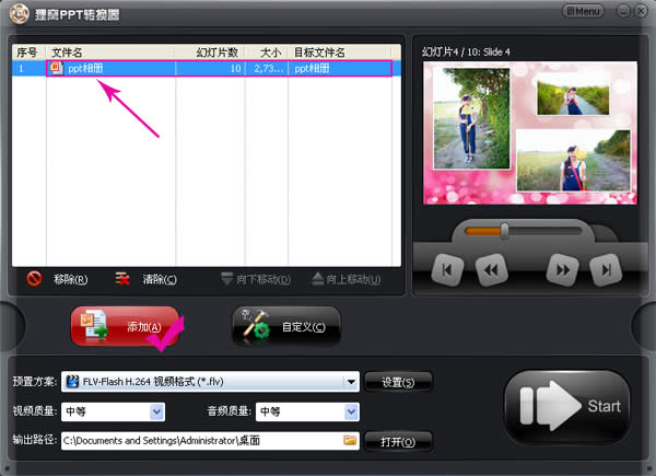 打开狸窝PPT转换器,通过主界面上的“添加”按钮,把我们刚制作好的ppt相册导入软件。