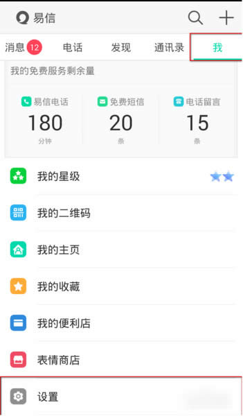 1、首先我们打开易信客户端,点击“我”在下面选择并点击“设置”;