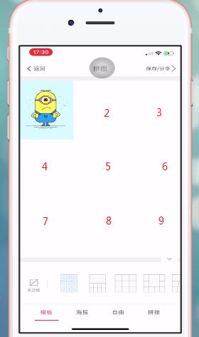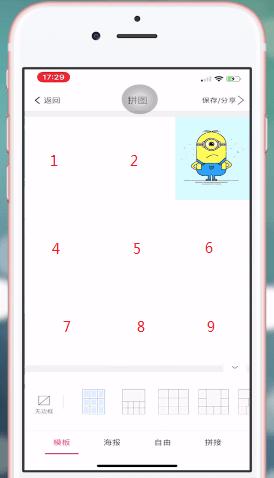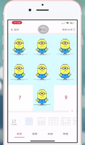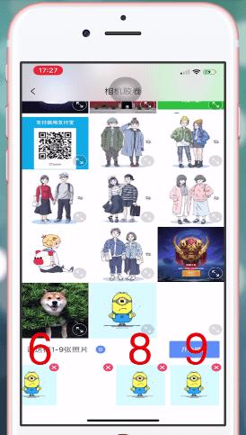 上传9张图片,拼图排在第6、8、9位置,其他位置放白图;