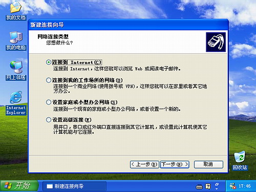 默认是选择“连接到 Internet” ,直接点击“下一步”,出现如下图4所示