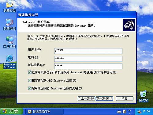 输入联通或电信等网络提供商给你的宽带连接的用户名和密码,然后点击“下一步”,出现如下图10所示。