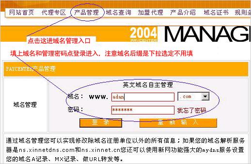(1)登录域名管理: 输入域名和域名管理密码登录,如下图 |