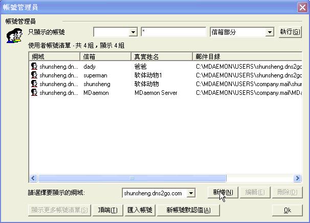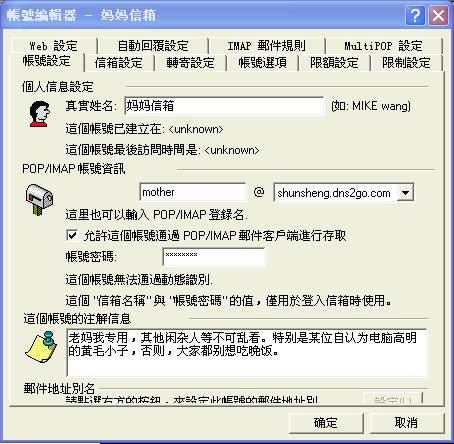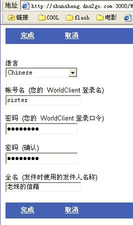 输入 sister,密码按完成,一个叫sister@shunsheng.dns2go.com的信箱马上搞定。