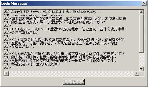 10、Logging message file(登录信息文件):在这里可以输入(或选择)一个事先建立好的文本文件(一般)的完整路径和文件名,登录成功之后就会出现相关提示信息。提示信息如下图: