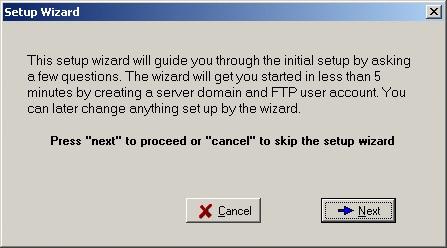 2、打开Serv-U管理器。选上图的“Serv-U Administrator”,即出现“Setup Wizard”(设置向导)。此向导可以帮你轻松地完成基本设置,因为建议使用它。直接选“Next”(下一步)。如下图: