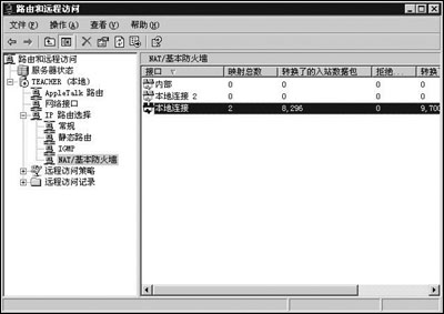第1步 打开“路由和远程访问”对话框,在左侧窗格中依次展开“ServerName→IP路由选择”目录,单击选中“NAT/基本防火墙”选项(如图2)。