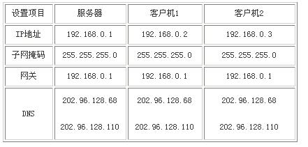 硬件准备:服务器与客户机均使用一张带有RJ45接口的10M或100M网卡。一台集线器(HUB)或交换机(Swich)。
