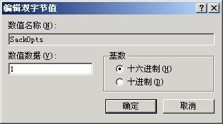 接着双击“SackOpts”键值,在弹出的如图1所示的数值设置窗口中,输入数字“1”,再单击“确定”按钮,最后将计算机系统重新启动一下,这样的话安装在该计算机中的Adsl就能自动启用数据分包功能了,此时再用Adsl上网传输大容量数据时,你会发现ADSL的速度一下子快了不少。