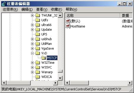 依次选中注册表分支HKEY_LOCAL_MACHINESYSTEMCurrentControlSetServicesVxDMSTCP,如图2所示;