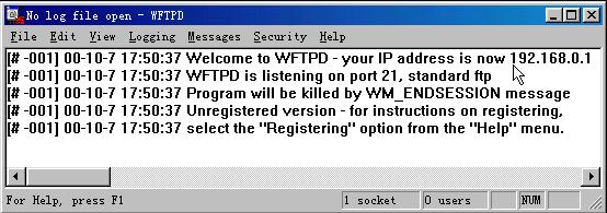 2、不需重新启动。执行wftpd.exe即可激活FTP服务。主屏幕如下图: