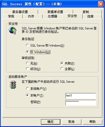 创建新用户帐户后,我们使用 SQL Server Enterprise Manager 更改了启动服务帐户信息,强制数据库服务以此用户的身份运行。