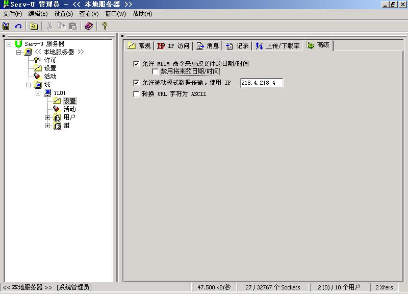 一个基本条件:一个公网IP,对网关有操作权限FTP服务器端192.168.0.100,我选用Win2K+Serv-U 4.1.0.0,很普通常用的一个组合