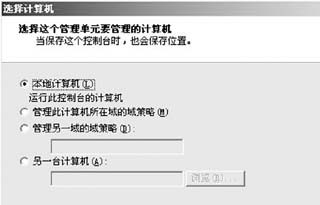 4、单击[添加]按钮,启动“选择计算机”对话框窗口,并利用各个单选按钮确定当前IP安全策略待管理的计算机,可以将管理范围设置为:本地计算机、管理此计算机所在域的域策略、管理另一域或另外一台计算机(如图1所示)。