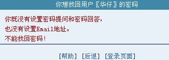 这一行的post改为get,再将response.redirect("showerr.asp?errtext="&errText)这一行跳转的代码改为'response.redirect("showerr.asp?errtext="&errText),注释掉这行程序。然后,我们在自己机器里注册个华仔ID,然后设定密码保护,如图