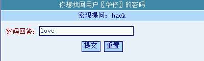 http://信息港网址/传说水吧/usersetprotectpass.asp?remand=hack&answer=love&B1=%CC%E1%BD%BB