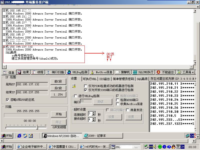 远程桌面上打开WINNTAutoAttack,填入我们想扫的IP地址: