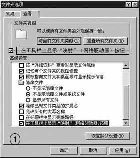 首先要在文件夹选项打开共享功能(如图1),然后就可以点击工具栏的[映射