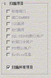 “打开了X-Scanner,在扫描项目中可以任意的指定单独扫描哪一个特定的项目。比较多的是CGI和SQL或者FTP默认口令,这些都是很致命的服务器漏洞。”