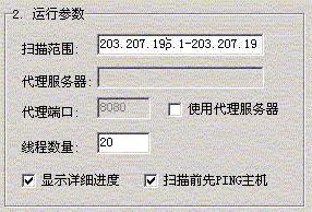 “下一步需要在〖扫描设置〗中进行参数的设置。一般的情况下,只对〖运行参数〗中的扫描范围进行设置。在那里只要填写网站服务器的IP地址就可以,可以填写一个来针对某一个特定的网站或服务器,也可以填写一个IP段范围,来扫描一段IP地址上所有的计算机。具体扫描参数格式如下:1.命令行:Xscan -h [起始地址]<-[终止地址]> [扫描选项] 其中的[扫描选项]含义如下: